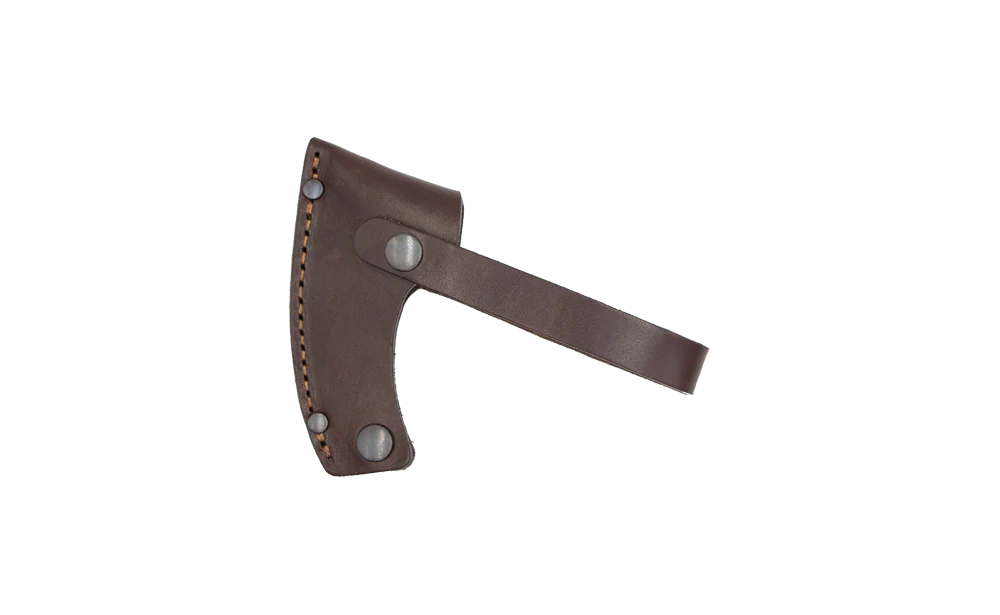 An all-purpose companion in the wilderness or for managing tasks closer to home. Ergonomic US-hickory handle with unique anti-slip paint for better grip. The head shape is the German "Rheinland" pattern which offers a larger, curved cutting surface. Each hatchet comes with a heavy-duty leather sheath with a 2-button release system, and a cotton storage bag.