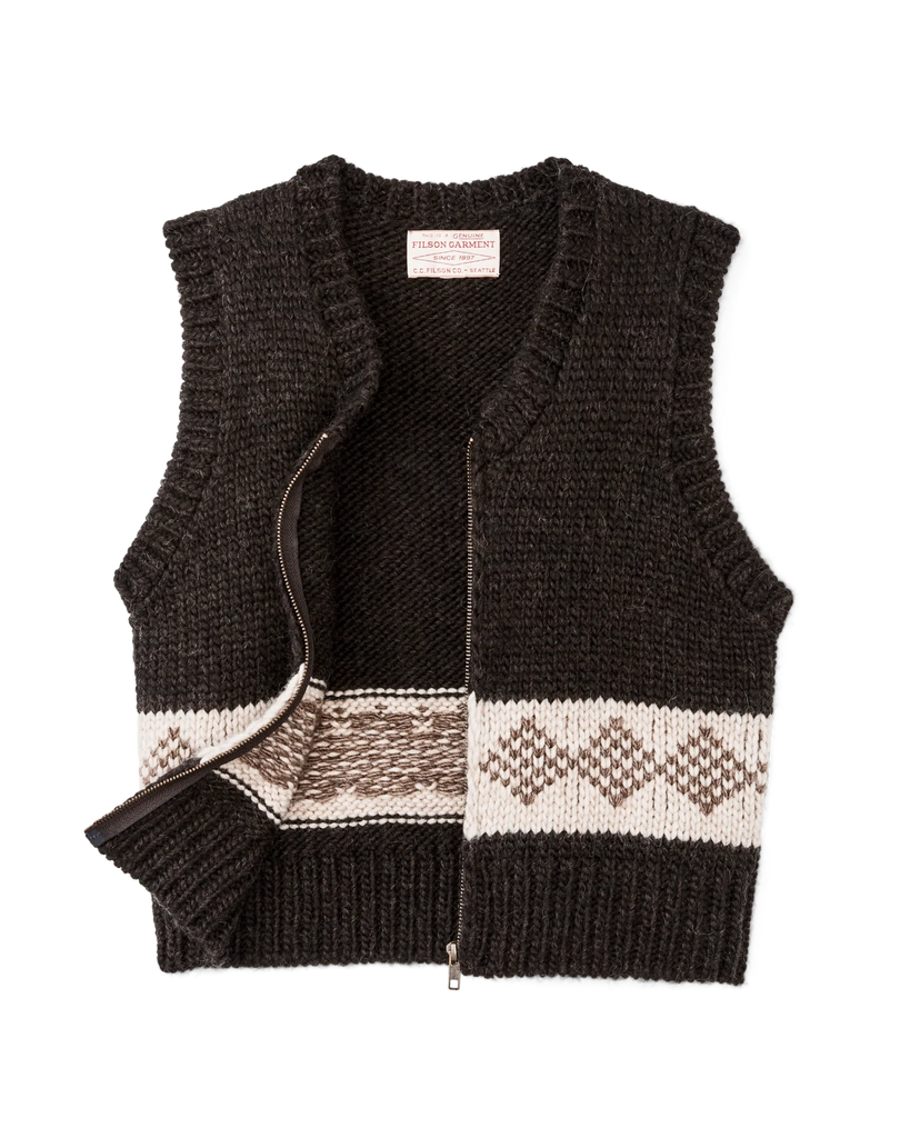 Our Women's Wool Vest combines the best of three worlds into one material. It's knitted with yarns made 45% wool for sturdy warmth, 30% acrylic for ease of care, and 25% alpaca for outstanding softness. You simply won't find a more comfortable or dependable warm layer for your core. The rib-knit armholes, hem, and V-neck collar provide relaxed ease and hold their shape well. Detailed knitted floral pattern at the waist. Zip-close front.