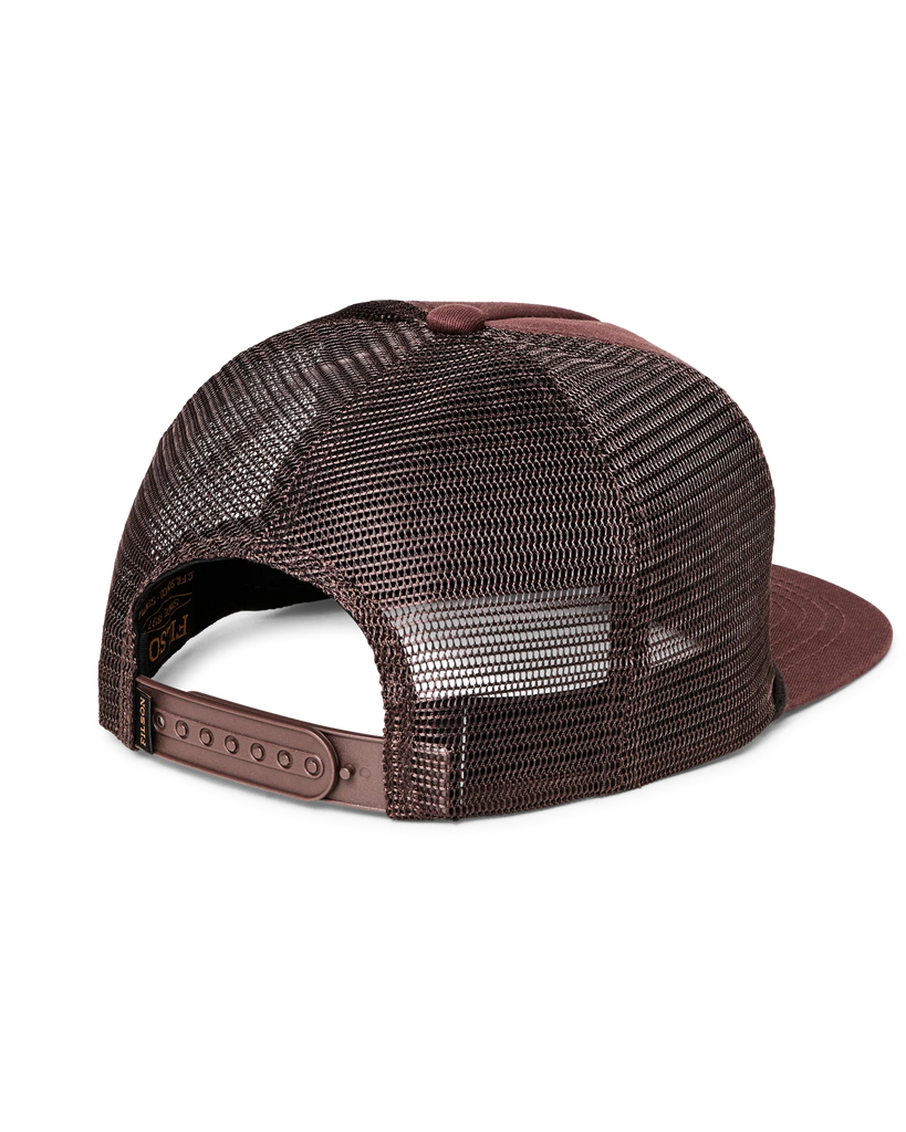 Like the trucker hats of the 1970s, this 5-panel cap is made with a pinched front crown and a flat brim. Mesh back and side panels provide excellent ventilation in the heat. Rope trim hides the joint of the front panel and brim, and the adjustable plastic back strap assures a custom fit. Classic embroidered Filson logo patch on front.