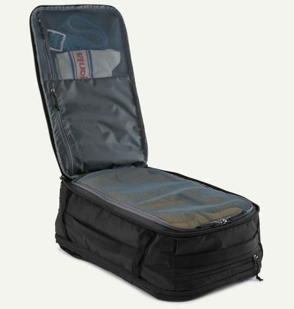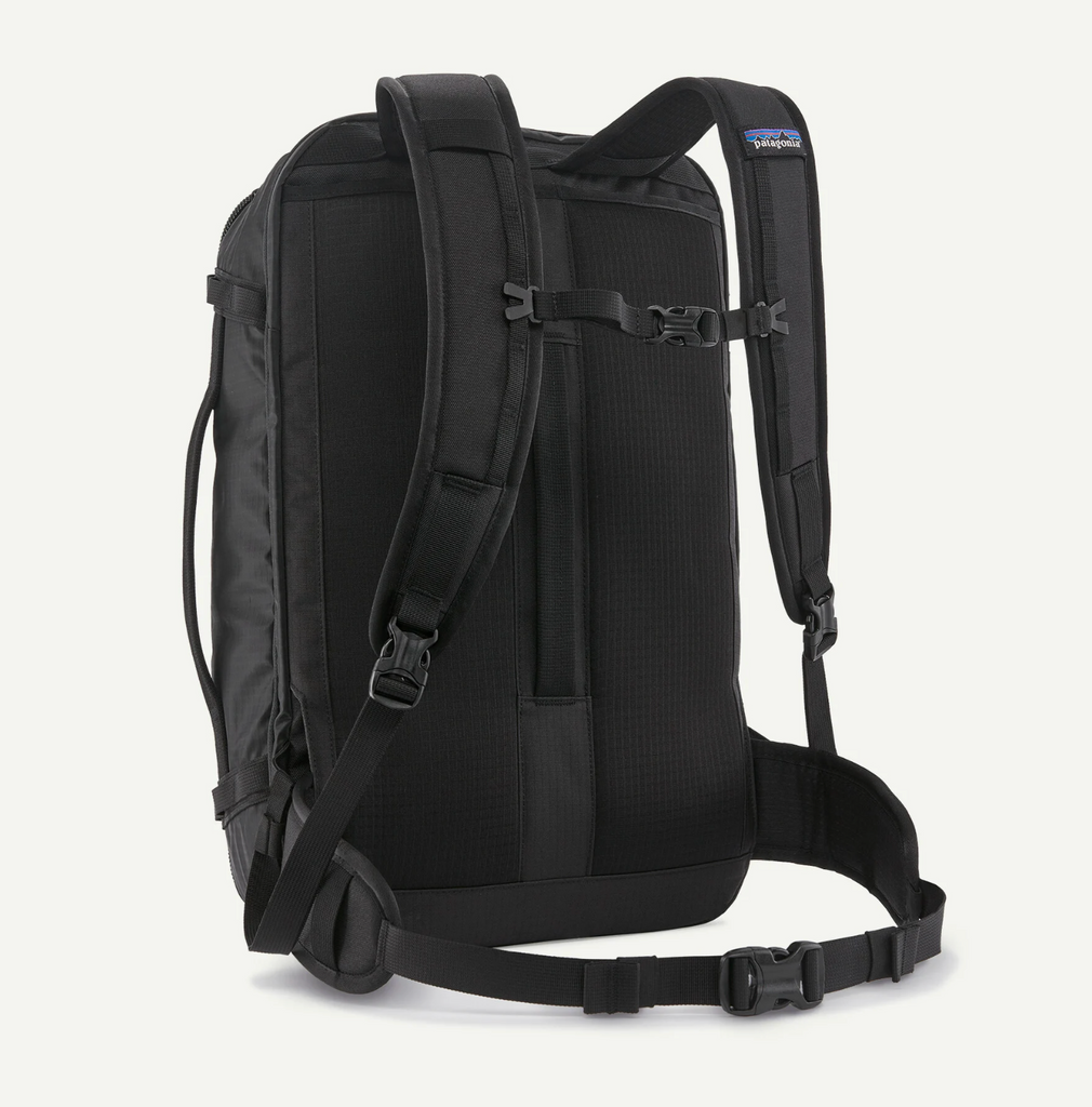 A smaller version of Patagonia's iconic 45-liter Black Hole® MLC®, the 30-liter Mini MLC is also built with recycled materials and a recycled TPU laminate. This travel-savvy, soft-sided backpack has tuck-away shoulder straps, plus a quick-stash padded hip belt that doubles as a shoulder strap. For use as a duffel bag or briefcase, tuck away all the straps and carry with one of the grab handles. The Mini MLC has plenty of room to keep you moving, but the bag also meets strict carry-on requirements. Made in a Fair Trade Certified™ factory.
