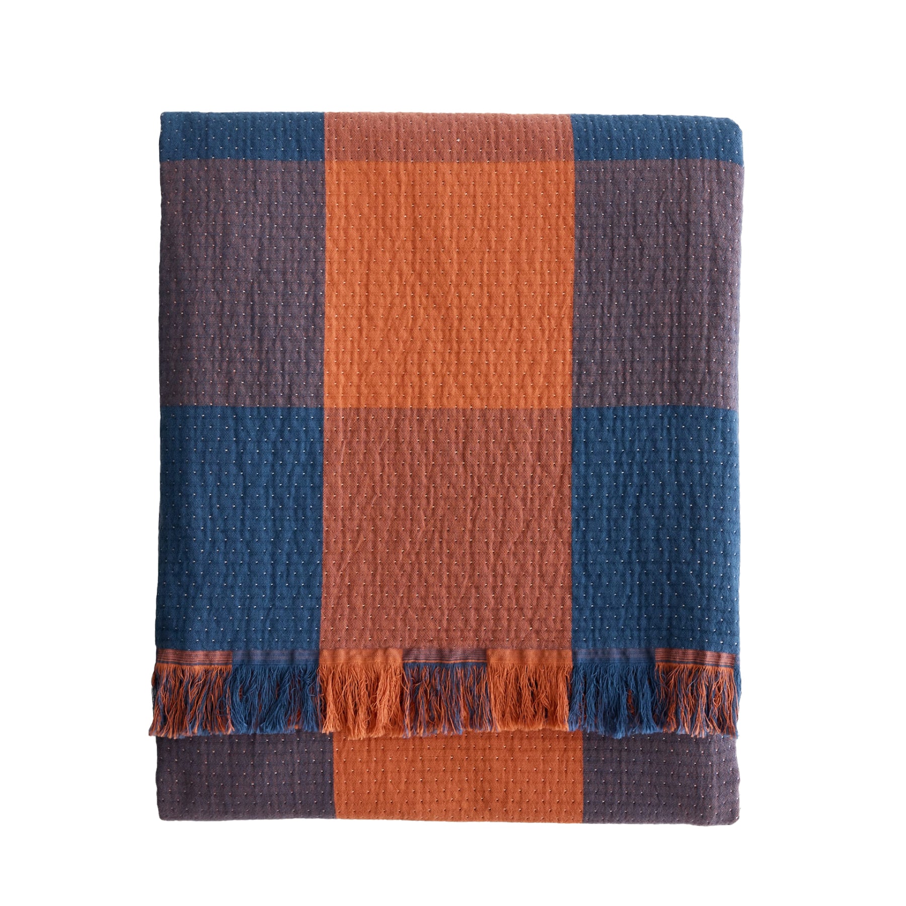 A lightweight throw crafted from soft certified organic cotton, featuring a bold block plaid that reverses to a smaller check, and finished with eyelash fringe. Created just for us by master European weavers. GOTS certified and sustainably made.