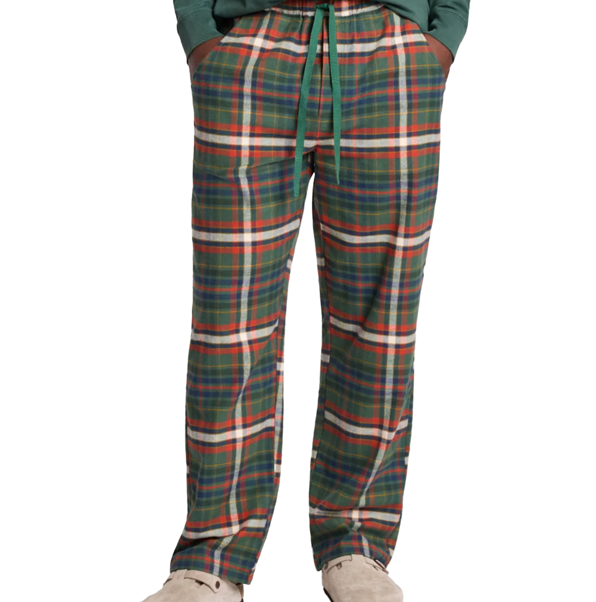 Soft flannel pajamas pants perfect for cozy lounging and sleeping, woven from pure cotton for breathable comfort. Tie waist, two pockets.