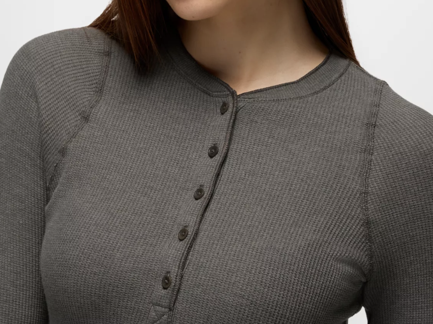 From cozy cabins to cool weather adventures, be ready for whatever the season brings in the Touchstone Henley. Made with a luxe waffle knit and stretch, this women’s henley has a five-button placket, curved hemline, and rib-knit cuffs.
