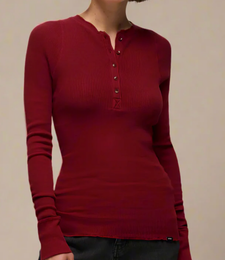 - Long sleeve Henley styling