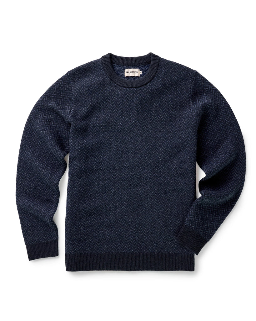 Taylor Stitch The Eddy Crew in Heather Marine Herringbone