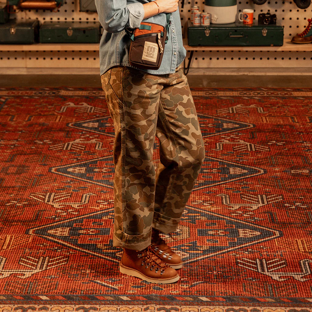 The Utility Pants: A spin-off of Topo's Dirt Collection made of organic cotton and GreenScreen® certified dyes, cutting water use by over 90% and avoiding harmful chemicals. The enzyme-washed canvas is soft yet durable (100g heavier than our Dirt Pants Classic. With a relaxed, straight leg fit and double-knee construction, these pants are built for ultimate utility.