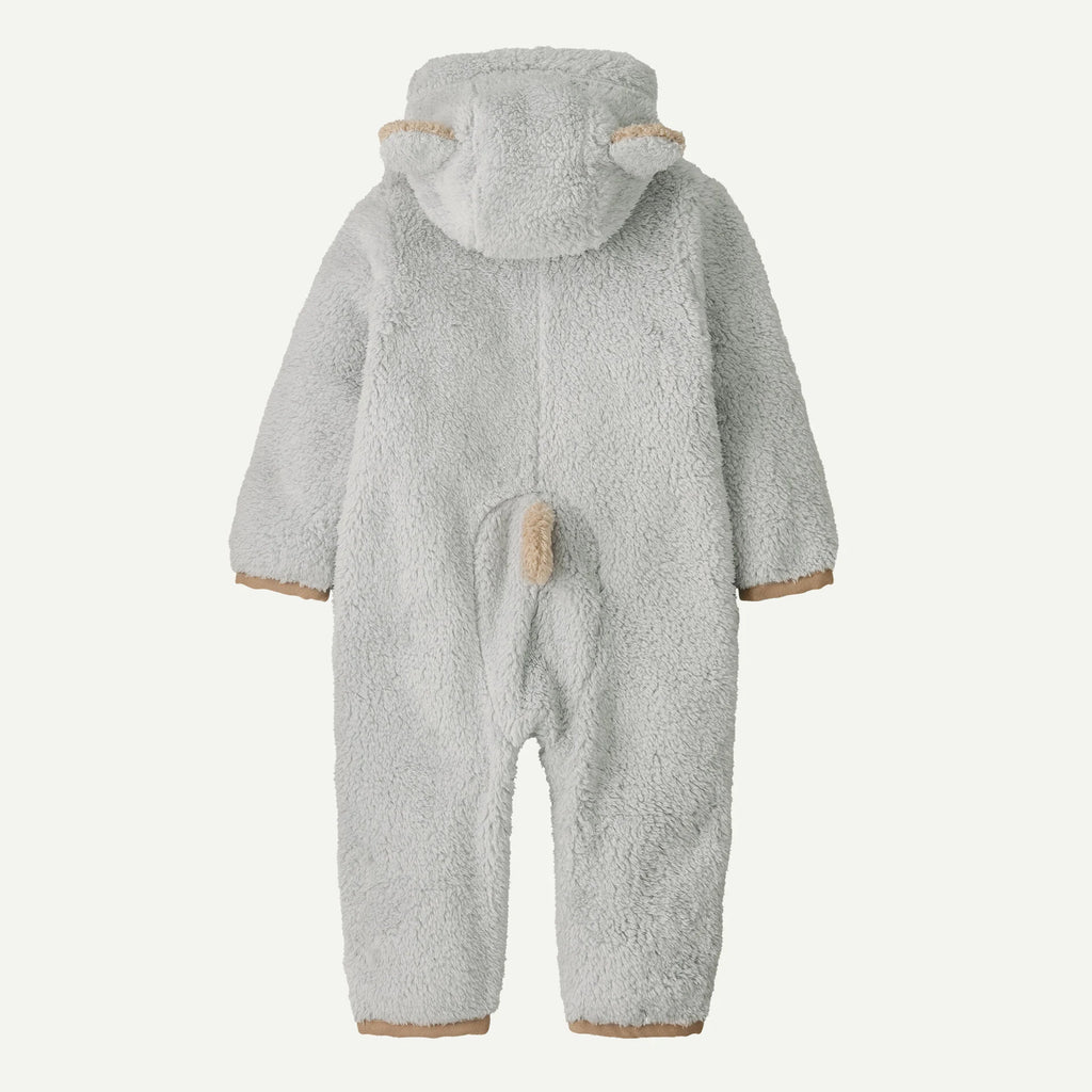 One-piece cozy bunting made of 100% recycled polyester high-pile fleece for cold-weather warmth. Three-panel hood, animal ears and tail styling, plus a binky-sized chest pocket. Made in a Fair Trade Certified™ factory.